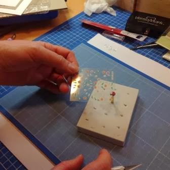 Avec la pointe de mon cutter, je décolle le motif choisi et je l’applique sur mon attache parisienne