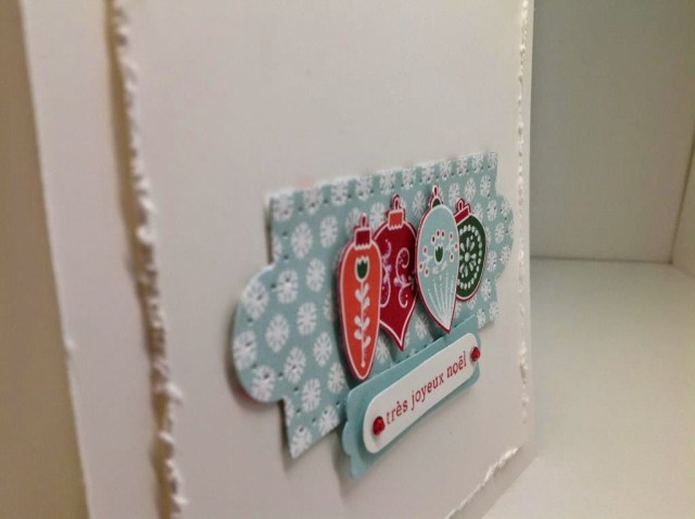 J’ai travaillé avec le set de papiers de la série Design Noël Boréal, en détourant certains motifs… Une technique très simple, quelques embellissements, de la colle pailletée, et le tour est joué !