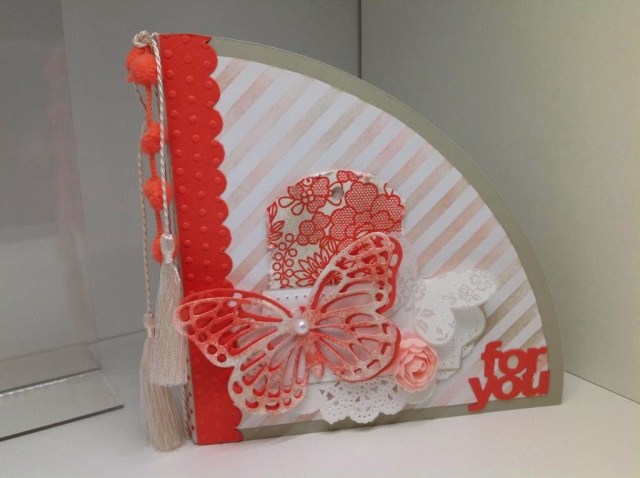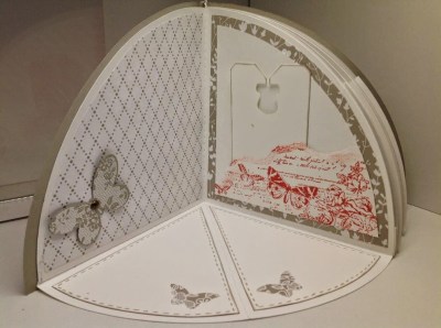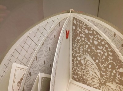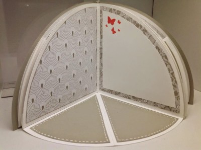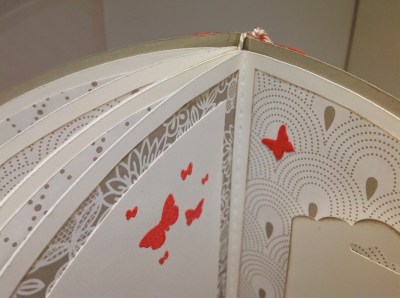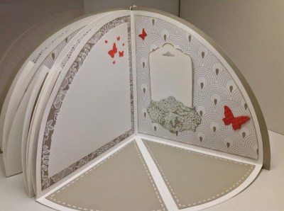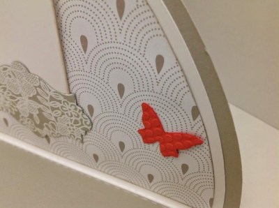 Pour concevoir cette nouvelle version, j »ai utilisé le papier de la série Design Voiles et Dragées, aux couleurs toutes douces, associé bien sûr aux papiers et encres Murmure Blanc et Sable du Sahara, le tout relevé avec une pincée de Corail Calypso ça et là.