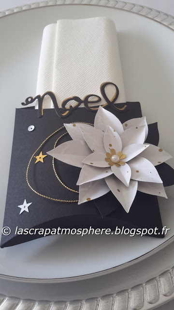 J’ai proposé cette boîte que nous avons réalisée avec les nouveaux poinçons thinlits Petite boîte Oreiller. Il n’y a plus qu’à glisser quelques chocolats à l’intérieur et elle fera merveille dans les assiettes de vos invités à l’occasion des fêtes de fin d’année !