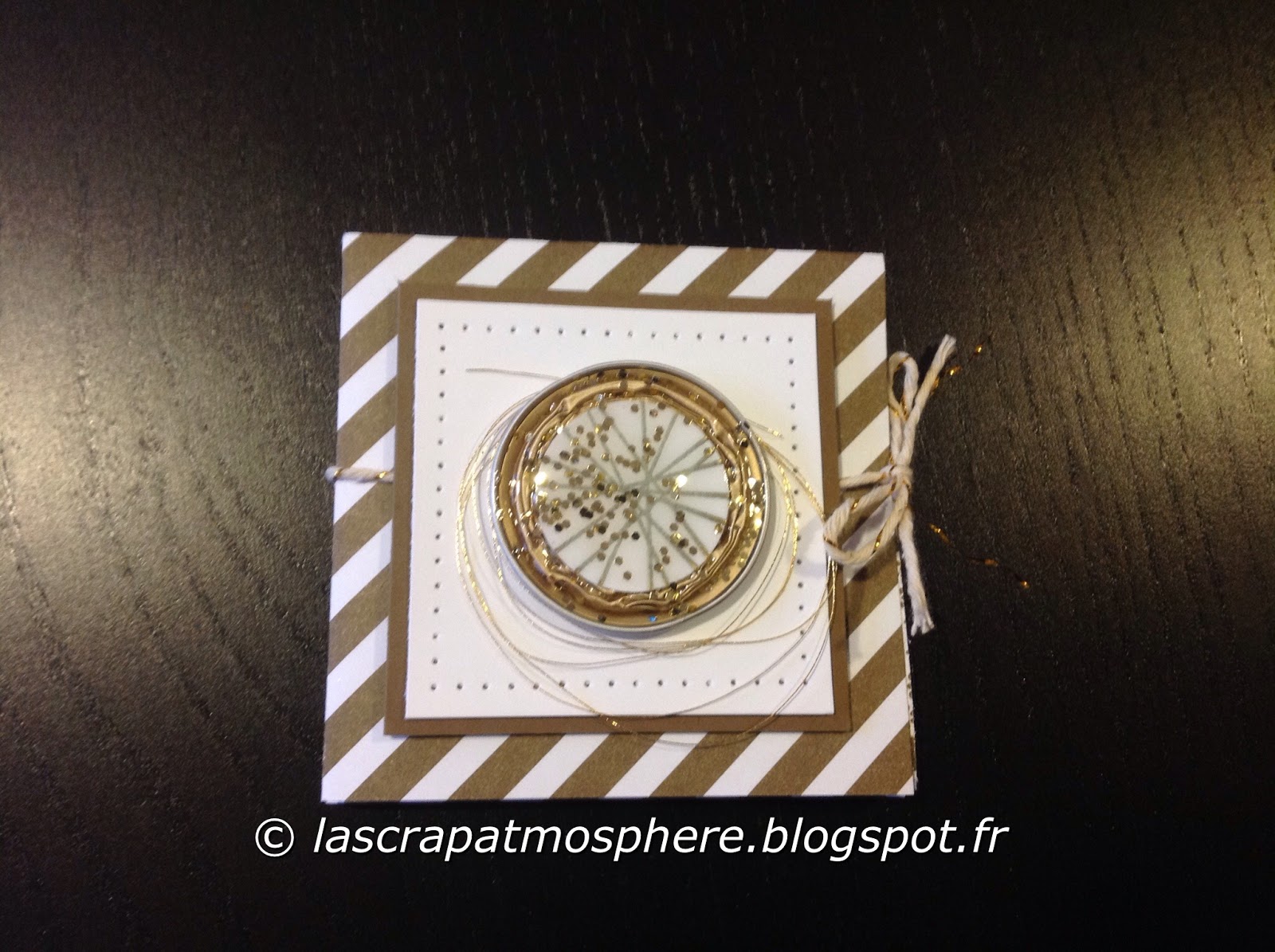J’ai réalisé mes swaps avec le bloc de papier Design de la collection Neutres, ils n’étaient donc pas tous identiques… Certains avaient une finition « or » et d’autres « argent » pour les paillettes, le fil Touche métallisée et la ficelle à rôti, et j’ai varié également les couleurs des capsules. D’ailleurs maintenant je n’achète plus la café en fonction de ses arômes mais en fonction dela couleur des capsules LOL !!!