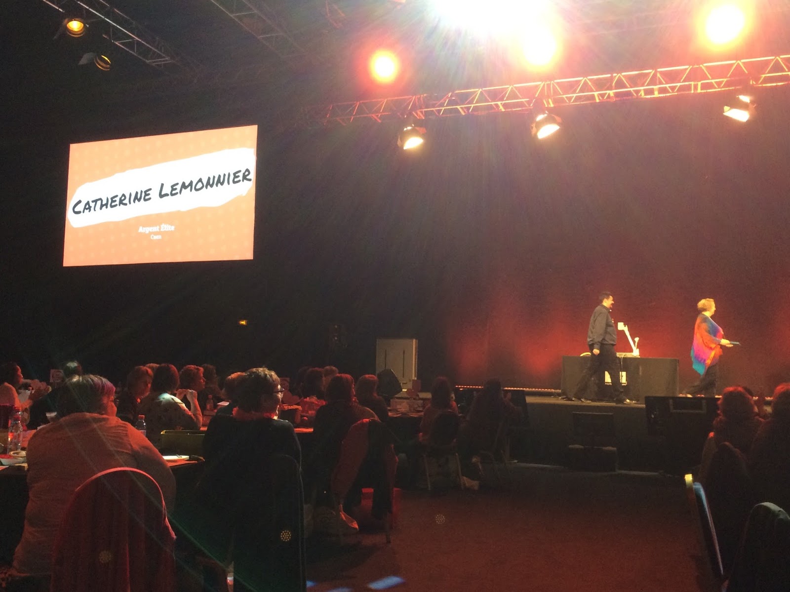 Ceux et celles qui me connaissent savent que je ne suis pas du genre à courir après les feux de la rampe, que l’appareil photo et la caméra me pétrifient, bref que je n’aime pas particulièrement être mise en avant, et bien là j’ai été gâtée car il m’a fallu remonter sur scène avec quelques collègues pour recevoir les honneurs en raison de ma progression de titre…
