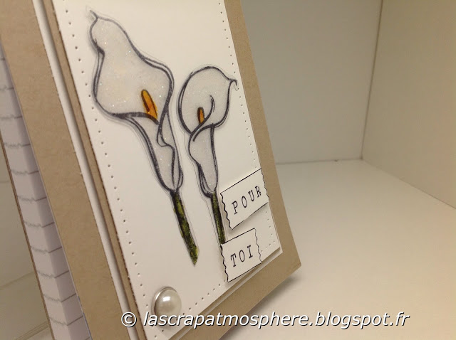 Nous avons réalisé l’habillage d’un petit carnet avec du cardstock Brune Dune et Murmure Blanc, et les filles ont utilisé au choix les tampons « Remarkable You » et le set hôtesse « Pensées positives » dont la grosse fleur est vraiment très belle…