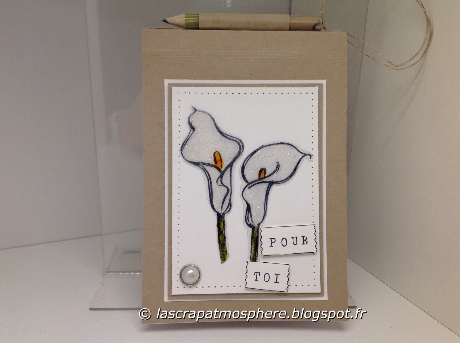 Nous avons réalisé l’habillage d’un petit carnet avec du cardstock Brune Dune et Murmure Blanc, et les filles ont utilisé au choix les tampons « Remarkable You » et le set hôtesse « Pensées positives » dont la grosse fleur est vraiment très belle…