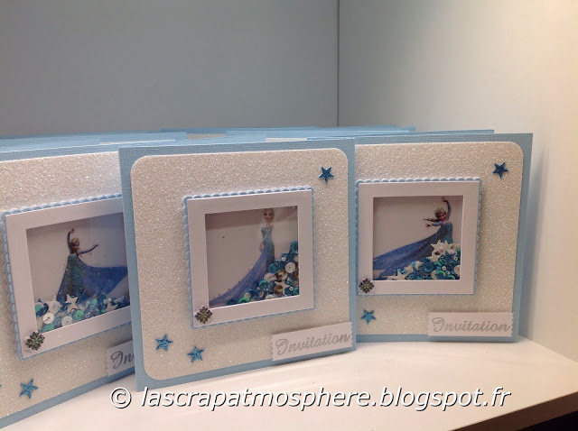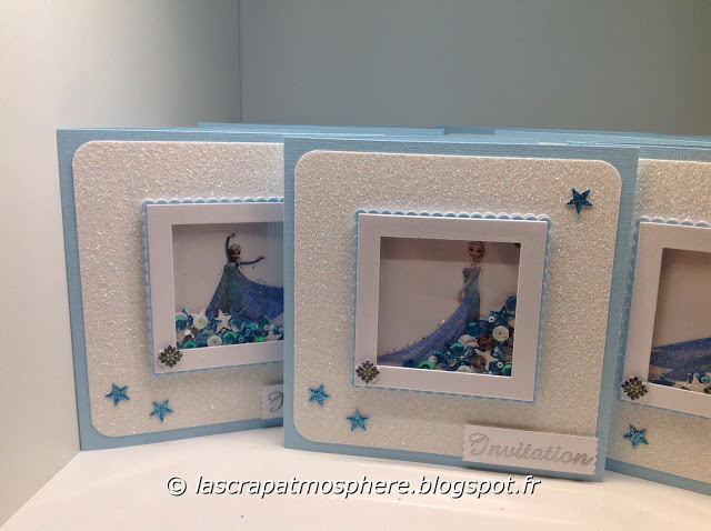 Aujourd’hui je vous montre une nouvelle carte à secouer, du sur-mesure avec thème imposé… la Reine des Neiges! Lorsque ma belle-fille a vu les cartes à secouer que j’avais réalisées pour OnStage, elle a craqué et m’a demandé de faire les invitations d’anniversaire pour les 5 ans de ma petite-fille Sarah , alors voici mon premier prototype