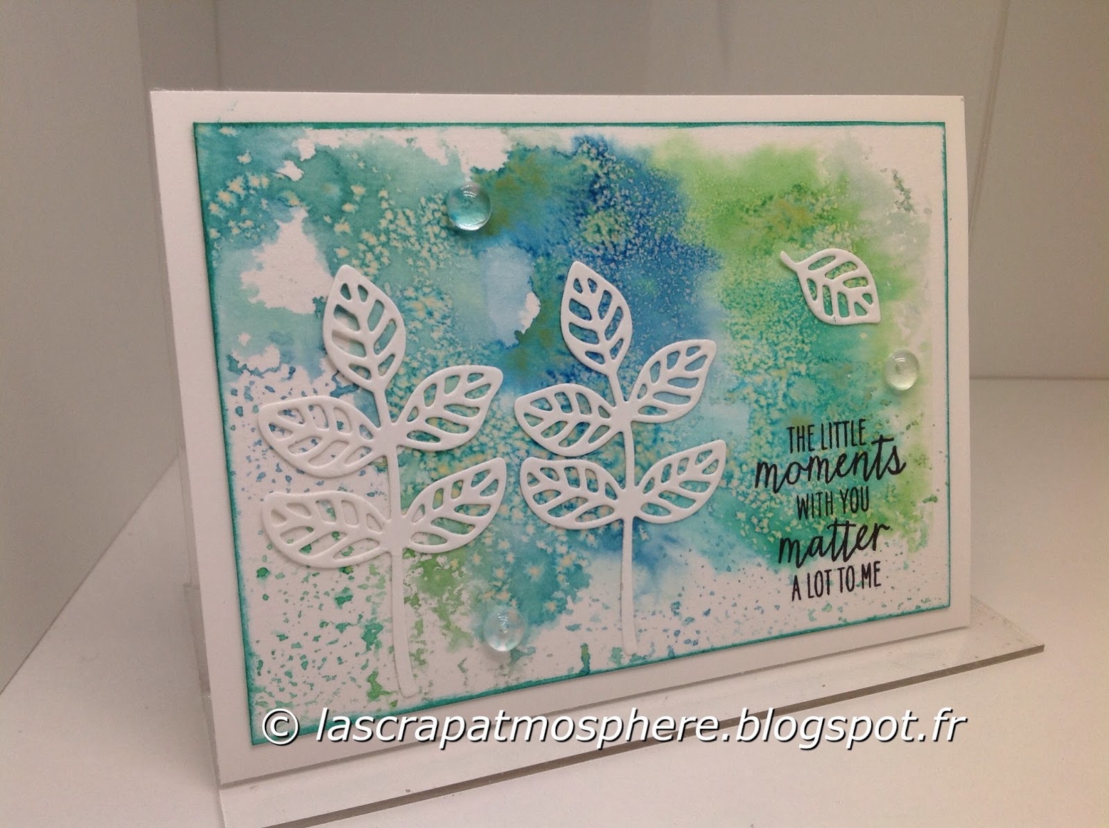 Puis j’ai simplement tamponné le message et collé quelques sequins ou perles de pluie.