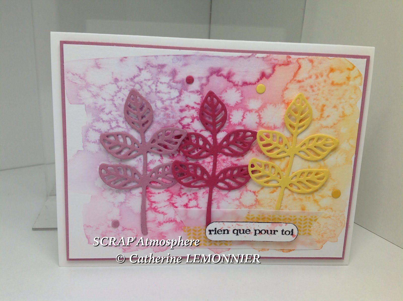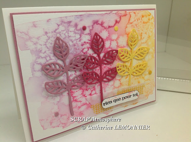 Pour cette carte je n’avais pas d’occasion particulière, je voulais simplement utiliser ce fond aquarellé que j’avais réalisé quelques temps auparavant.