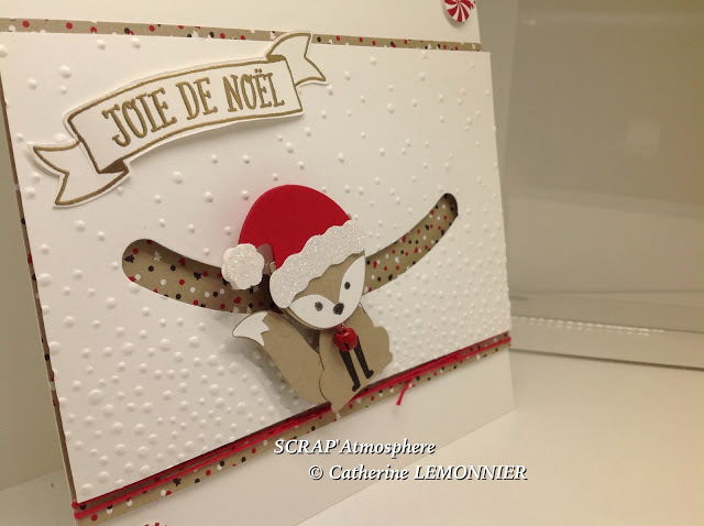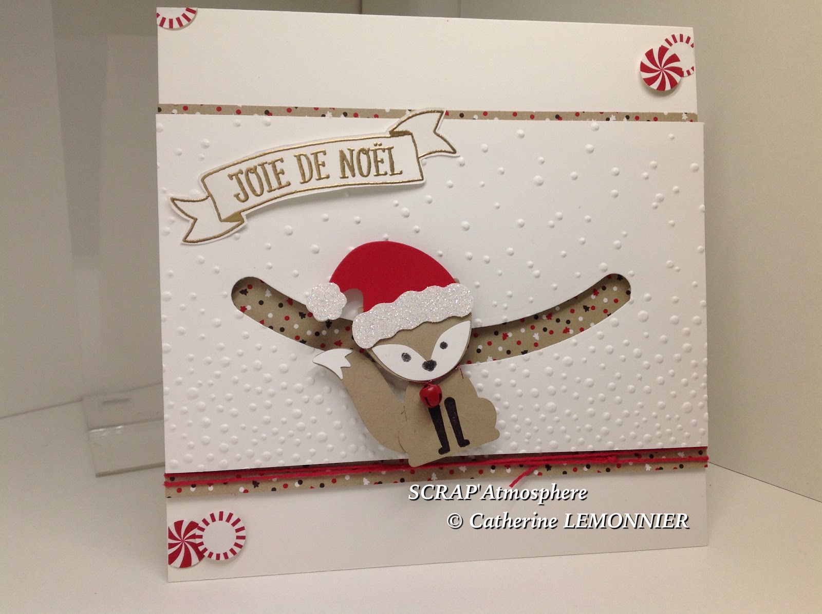 Cette fois j’ai choisi d’utiliser le thème de Noël, oui je sais que ce n’est pas encore demain mais ce n’est pas si loin non plus ! Cela nous a permis d’utiliser divers produits du petit catalogue : les jolis papiers Design Canne de Noël, la ficelle à rôti Canne de Noël, les jolies Mini clochettes, la perforatrice Bonnet de Père Noël en kit, et bien sûr notre perforatrice Renard en kit du catalogue annuel qui nous permet de réaliser toutes sortes de petits animaux bien sympathiques !