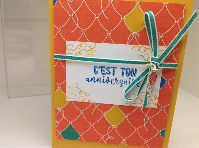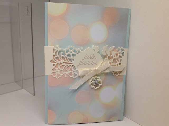 Nous avons eu bien sûr le grand plaisir de découvrir en avant-première le catalogue printemps-été avec lequel nous travaillerons dès le 4 Janvier (je crois vous avoir déjà dit ce que j’en pensais…), d’assister à des démonstrations de nouveaux produits par des collègues démonstratrices (j’avais eu moi-même la chance de présenter des projets à On Stage en Avril), et de réaliser des « make and take » (ou « réaliser et emporter ») que je vous dévoile maintenant…