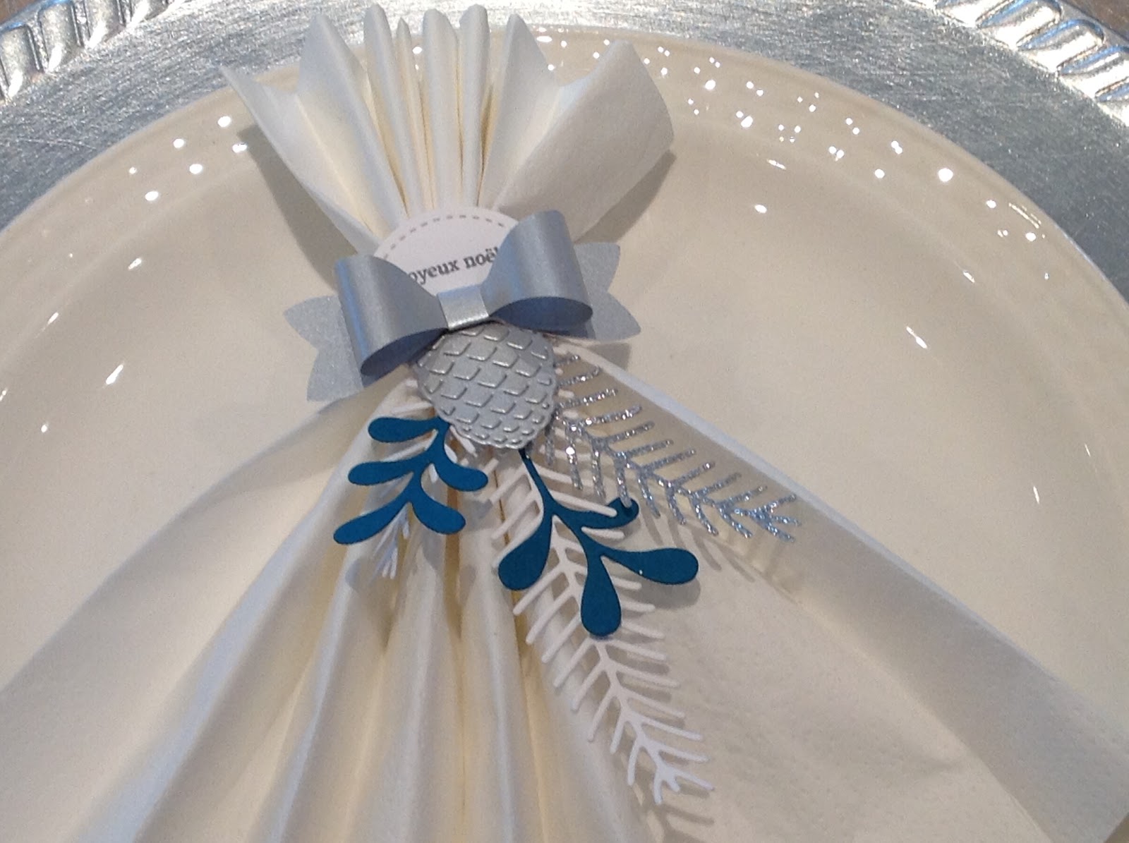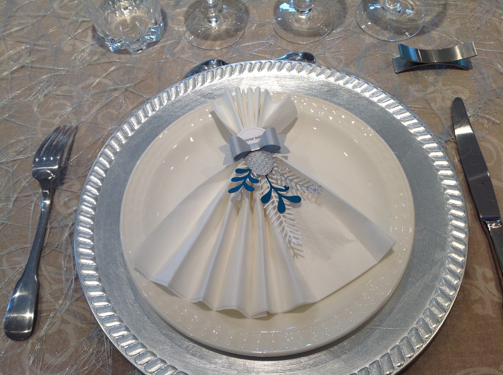 C'est sublime !Quelle élégance, quelle belle déco, j'aime beaucoup la bleue.Ta table devait être magnifique. Je me demande si j'aurai osé dénouer le ruban tellement la serviette est belle comme ça