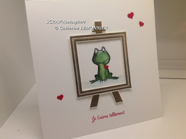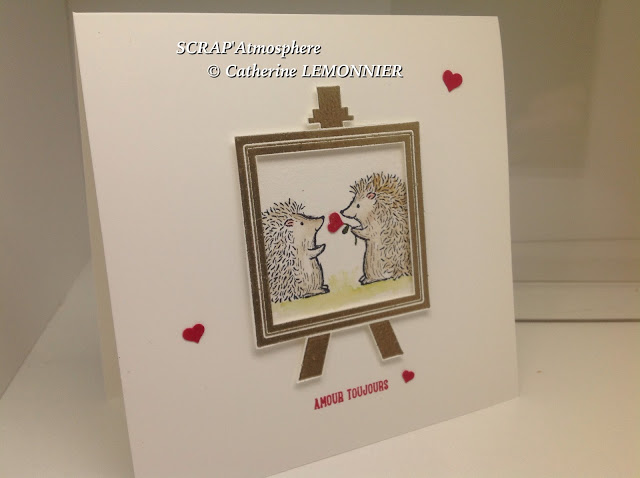 Pour ces trois cartes j’ai utilisé le set de tampons hôtesse Love you lots, et j’ai emprunté le chevalet du set de tampons Palette d’artiste pour mettre en scène ces mignonnes créatures.