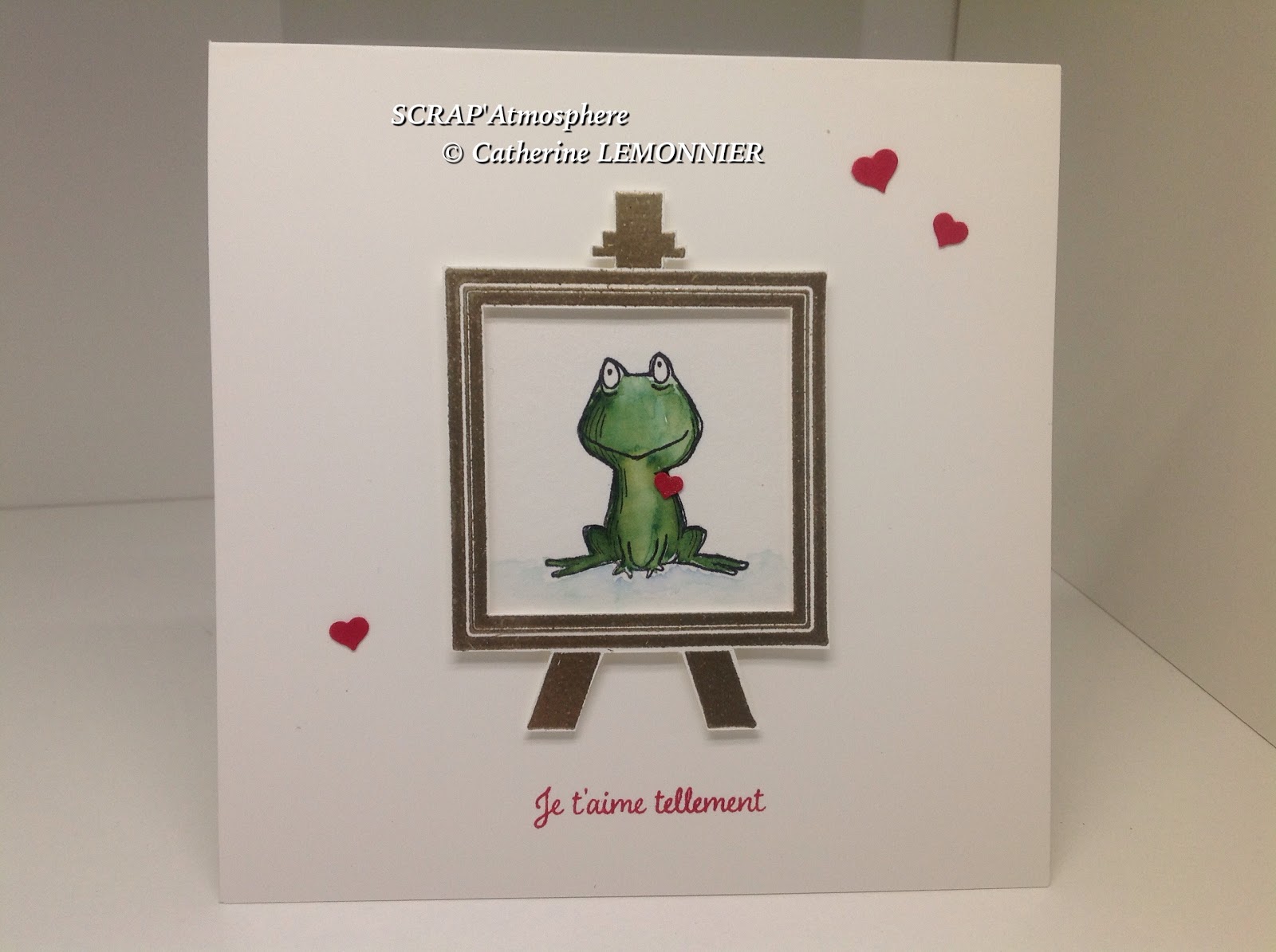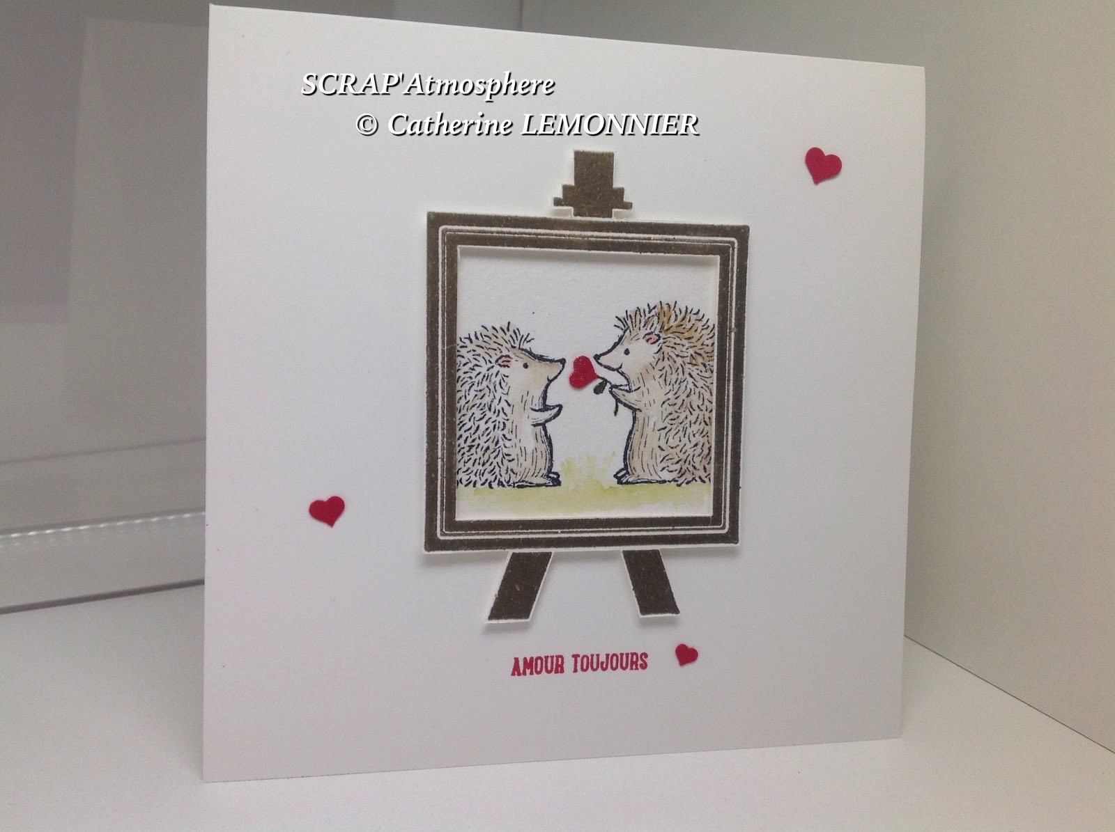 Pour ces trois cartes j’ai utilisé le set de tampons hôtesse Love you lots, et j’ai emprunté le chevalet du set de tampons Palette d’artiste pour mettre en scène ces mignonnes créatures.