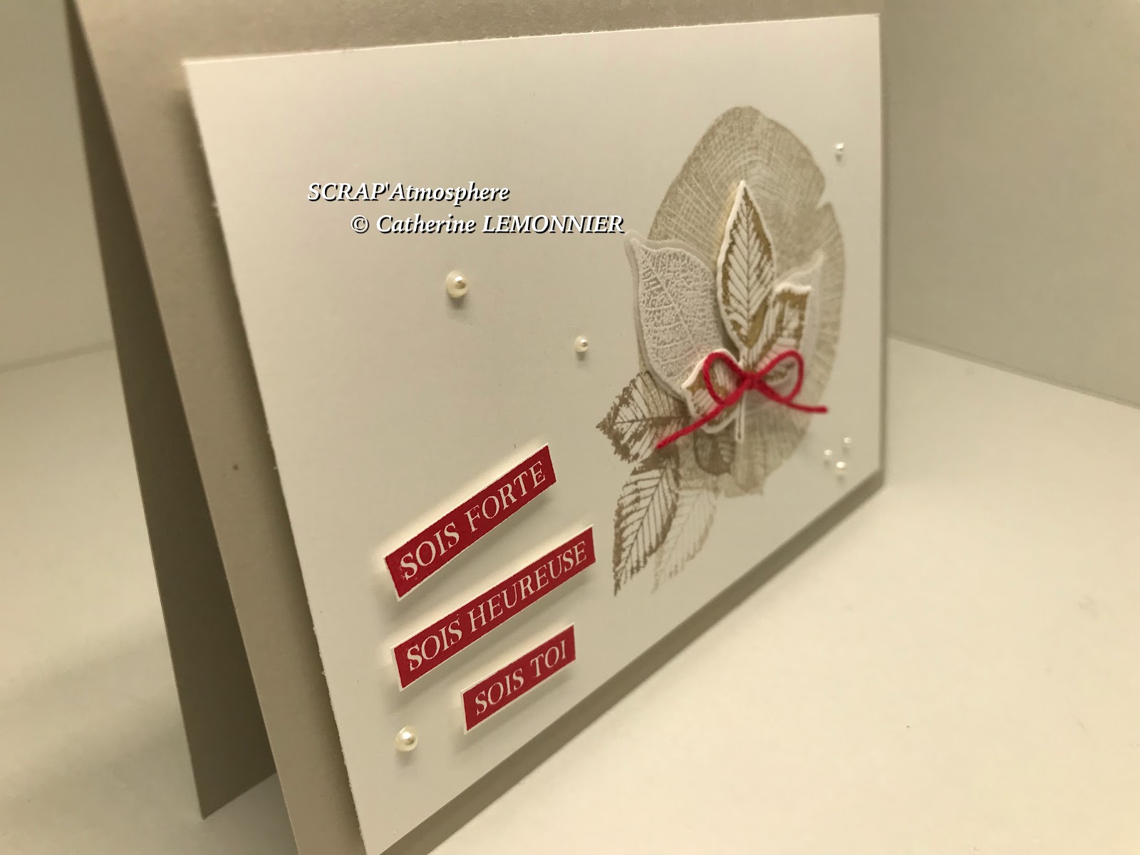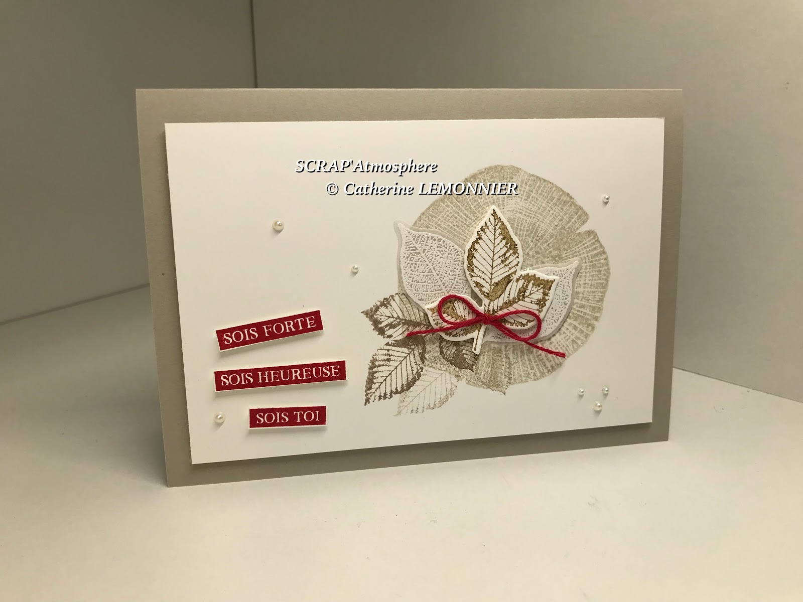 Cela fait quelque temps que je ne vous ai pas montré de carte… Alors en voici une qui utilise le superbe set Racines de vie…Cette fois j’ai utilisé un combo de couleurs très sobre à dominante Brune Dune, simplement réhaussé par de petites touches de rouge rouge… Quelques perles pour un chic discret et c’est tout… Simplement !