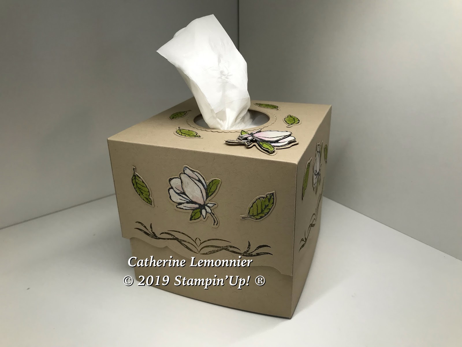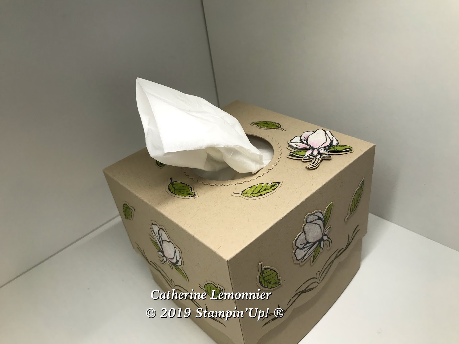 En attendant de découvrir le nouveau catalogue – patience, c’est pour bientôt – je vous propose ma première création avec cette collection, une nouvelle boîte de mouchoirs…