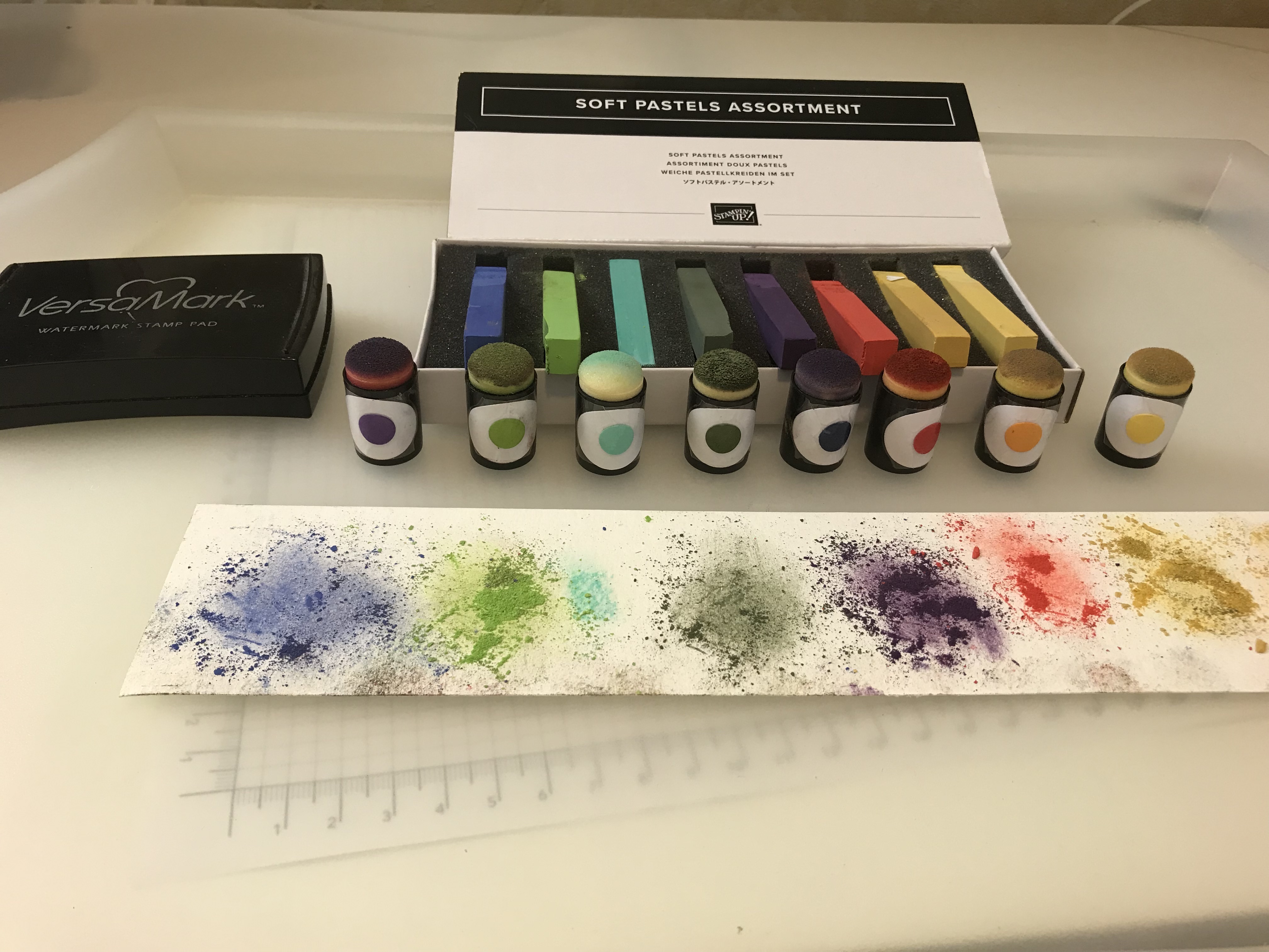 C’est d’actualité, alors je vous propose aujourd’hui une carte de voeux …Mais c’est une carte de voeux un peu particulière puisqu’elle met en avant l’Assortiment Doux Pastels, un assortiment de craies de pastels que vous trouverez p.126 de notre catalogue annuel. Ces pastels nous offrent plein de possibilités créatives, pour un prix très modique puisque la boîte coute 11€ et qu’à partir des 8 craies on peut créer beaucoup de couleurs.