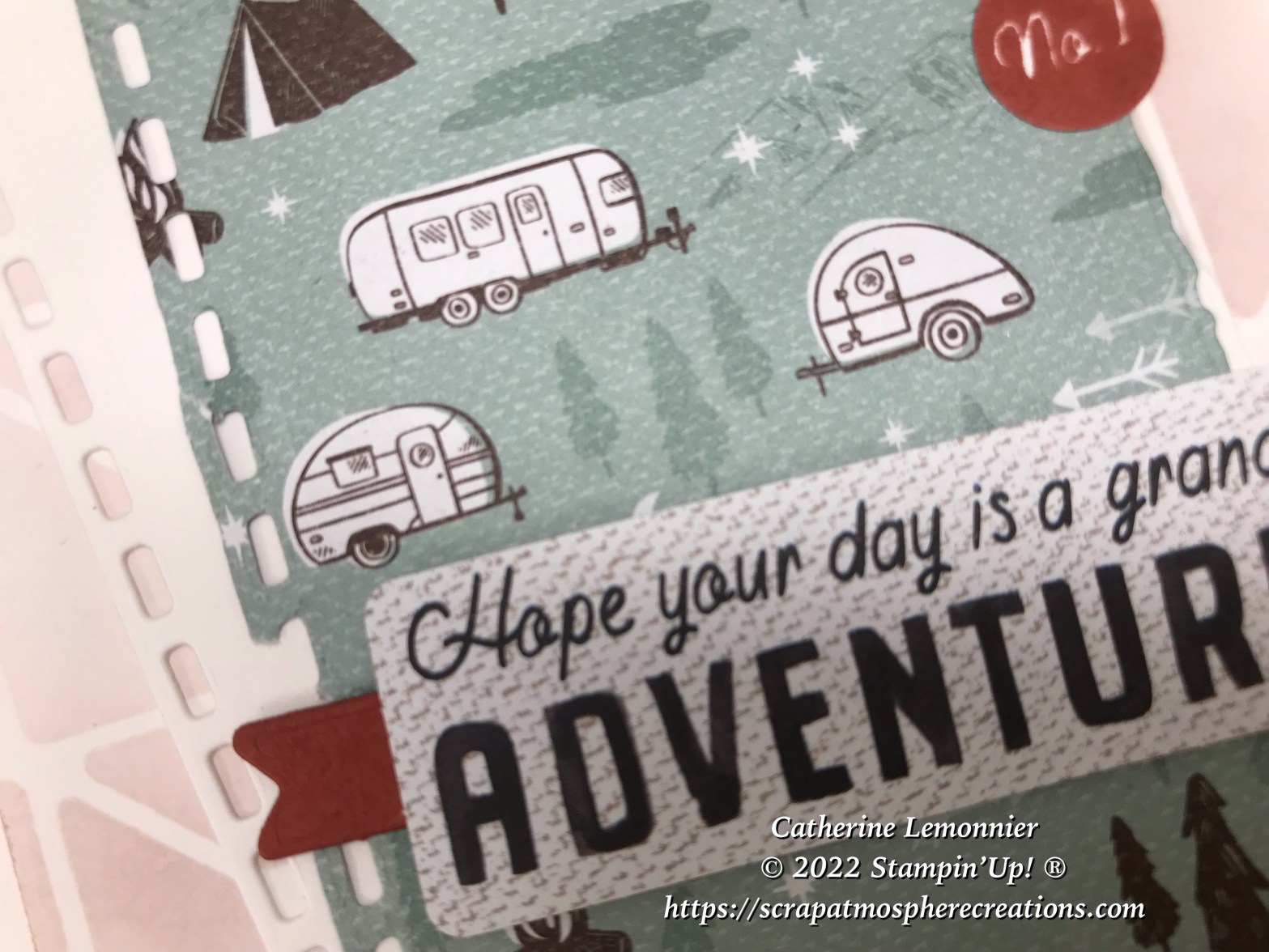 J’ai découpé le rectangle de papier Blanc Simple et le rectangle de papier de série design avec la nouvelle série de poinçons Rectangles Ebarbés, j’aime bien leur aspect irrégulier…J’ai percé le côté gauche avec l’un des deux poinçons du set Bonheur en éclosion qui fait une finition de type « page de carnet »…