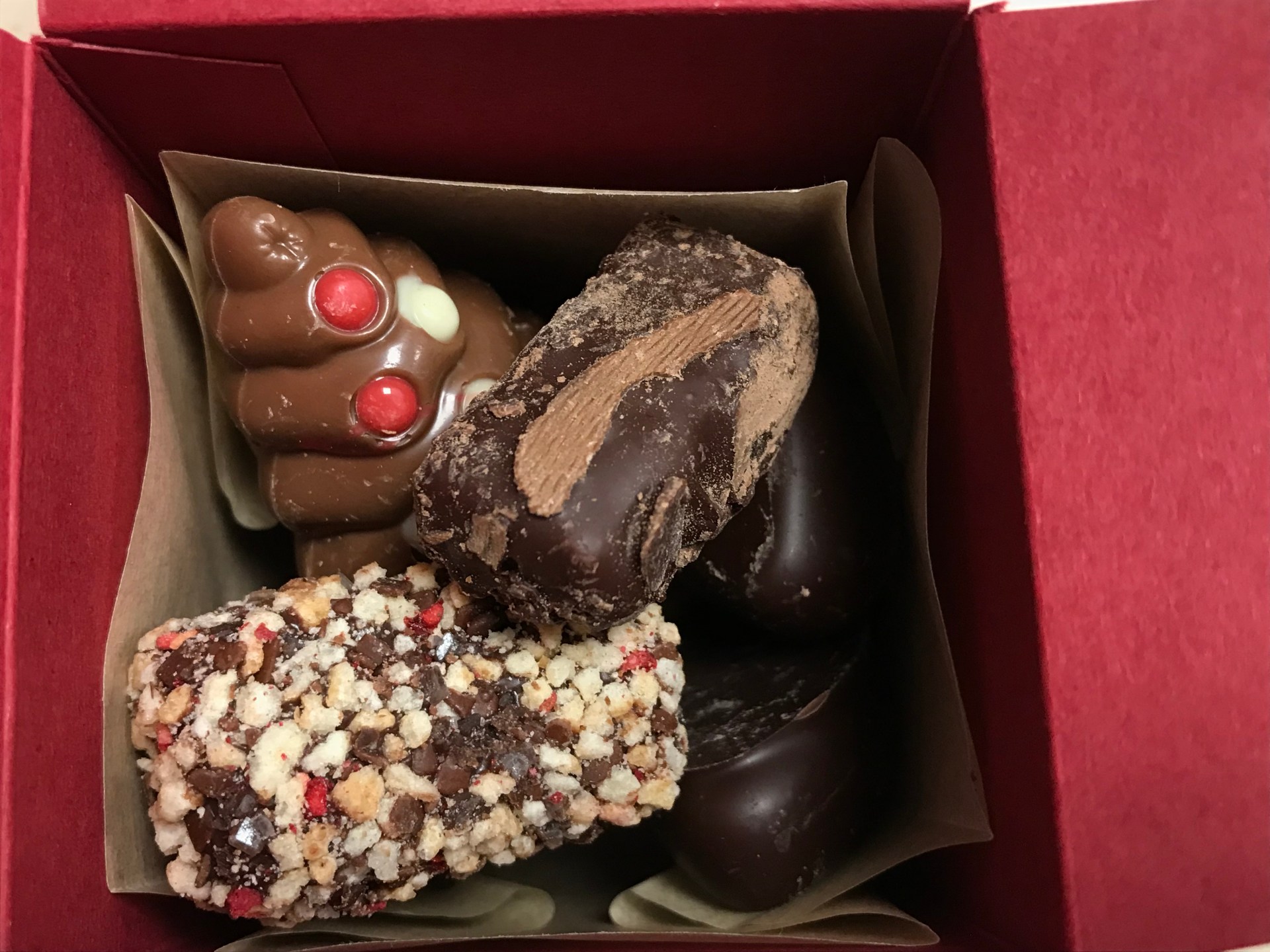 Dimanche j’ai reçu quelques unes de mes filleules et je leur ai offert des boîtes que j’ai fait remplir de chocolats chez mon chocolatier habituel.