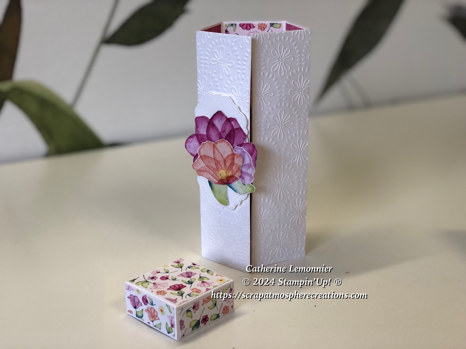 Cette petite boîte exposée dans mon atelier a beaucoup plu, et du coup je m’en suis inspirée pour créer un autre projet, que j’ai décliné en deux versions, au choix des participantes…
