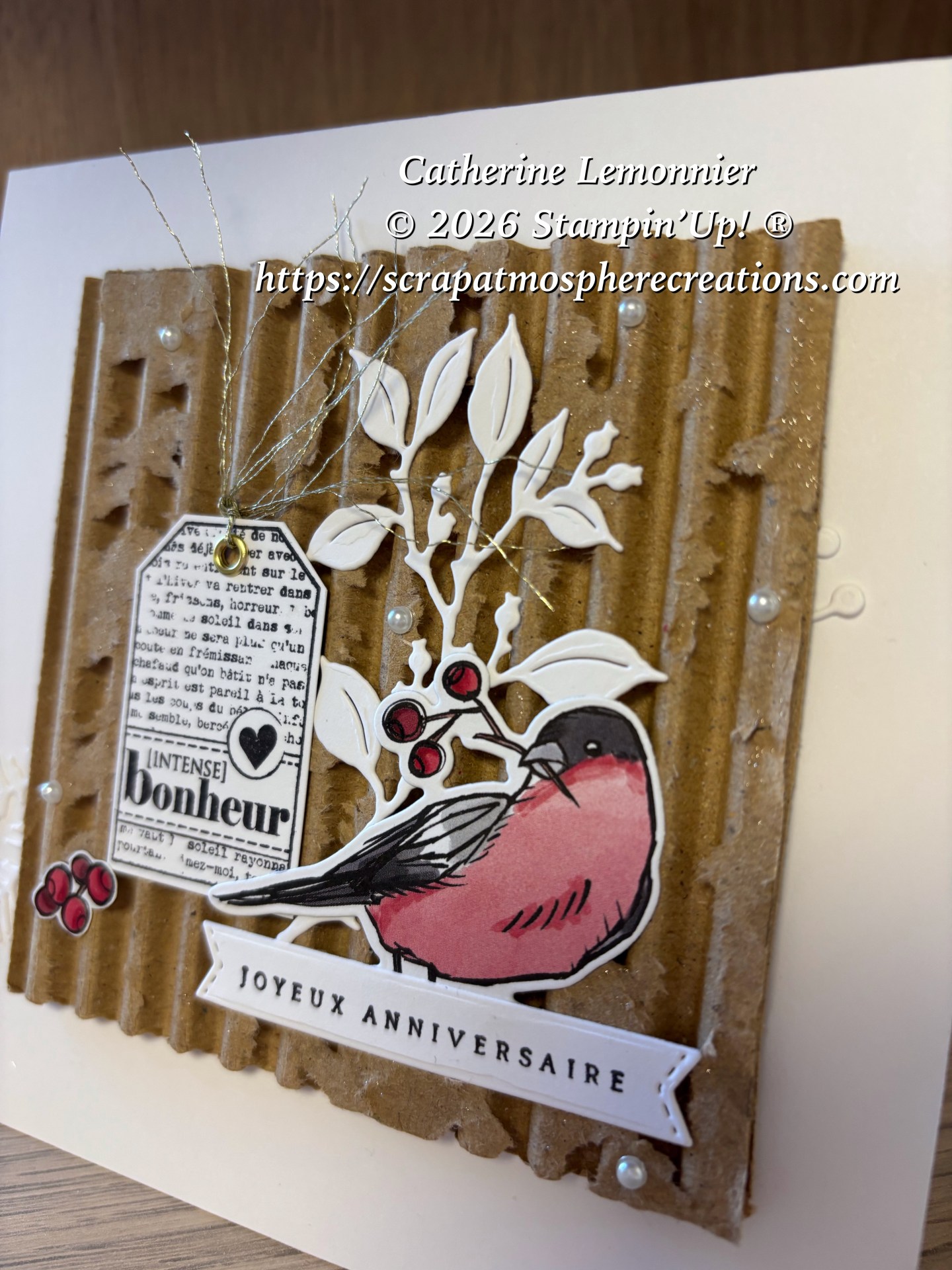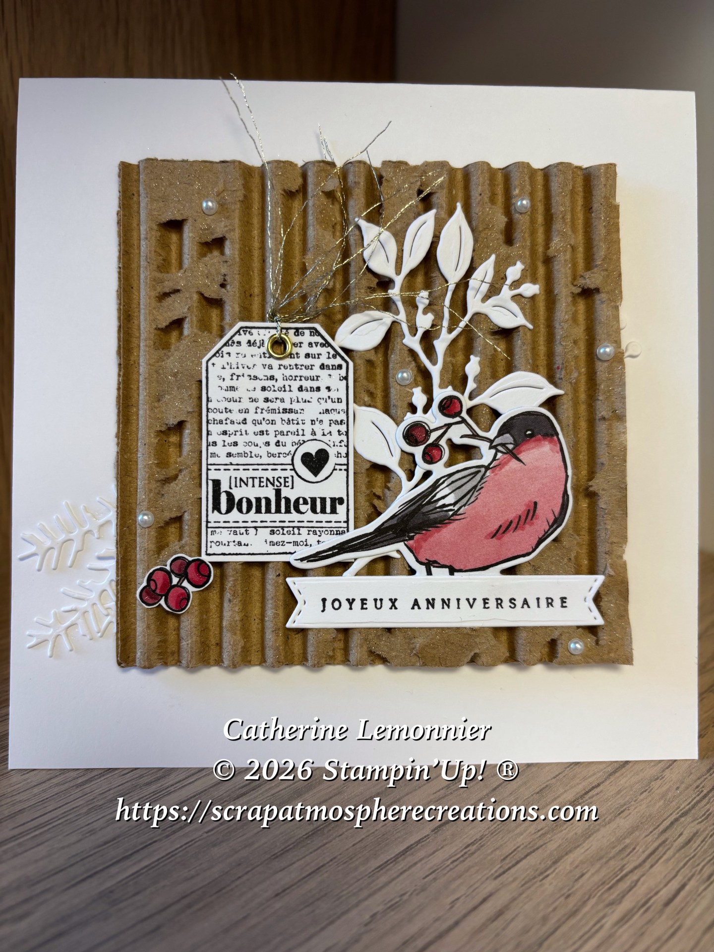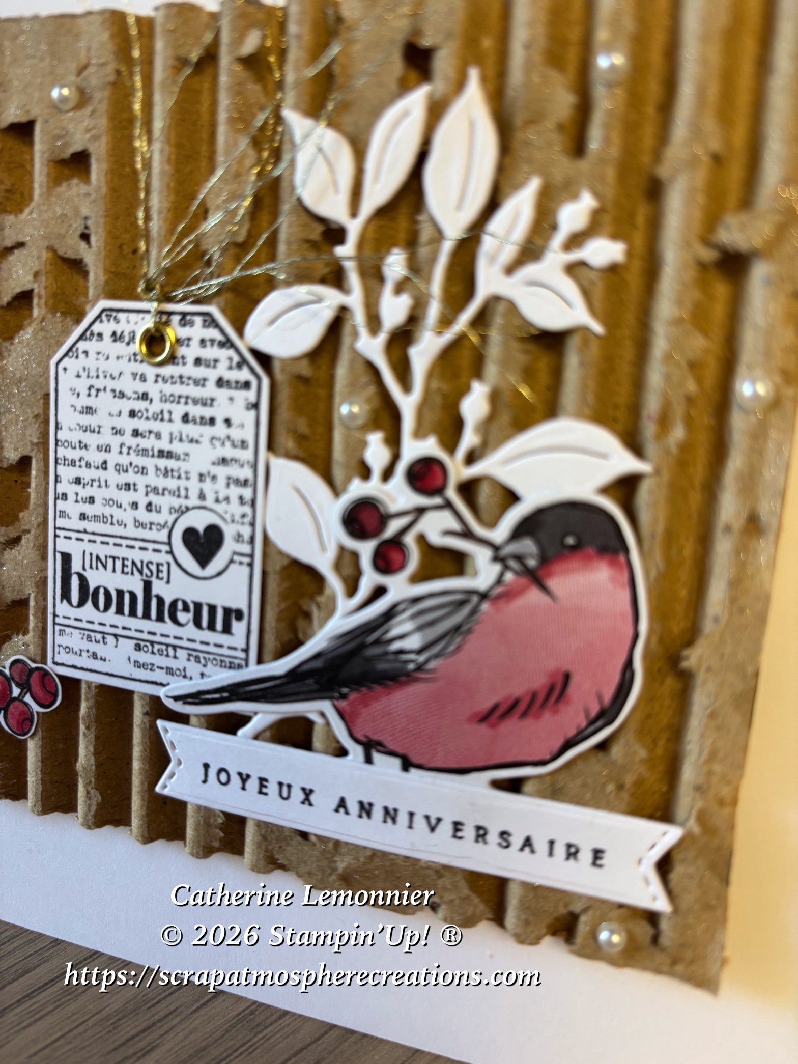 En ce début d’année il y a aussi des anniversaires à fêter, voici une carte destinée à une amie très chère ! C’est la première carte que j’ai créée cette année, et c’est elle qui a remis dans mon actualité ce morceau de carton « épluché » qui n’a l’air de rien mais qui ajoute beaucoup à mon avis.
