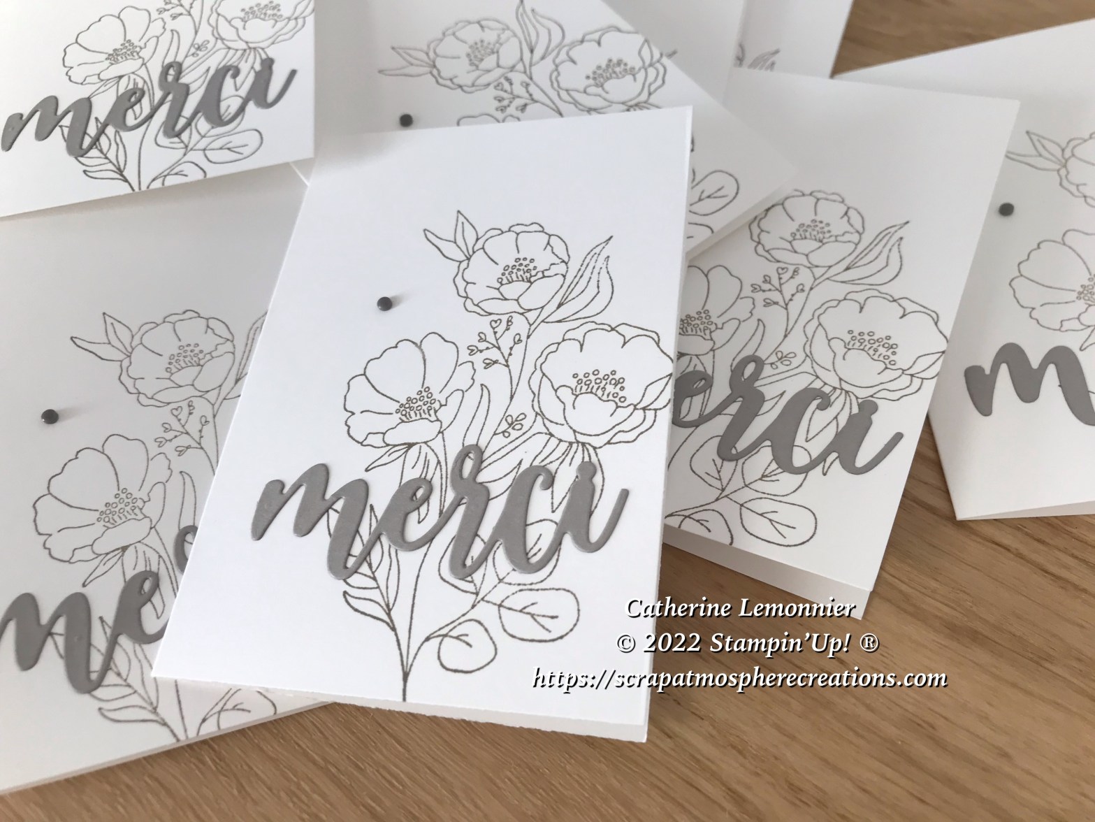 Même lorsque l’on aime faire des cartes, il y en a qui sont plus difficiles à créer car elles sont destinées à des personnes qui traversent des moments douloureux. Pour cette carte j’ai choisi d’utiliser le lot de tampons et poinçons Pivoine Pensive, et j’ai retenu la sobriété du Murmure blanc et du Gris Granite.Lire la suite « Une carte de condoléances »