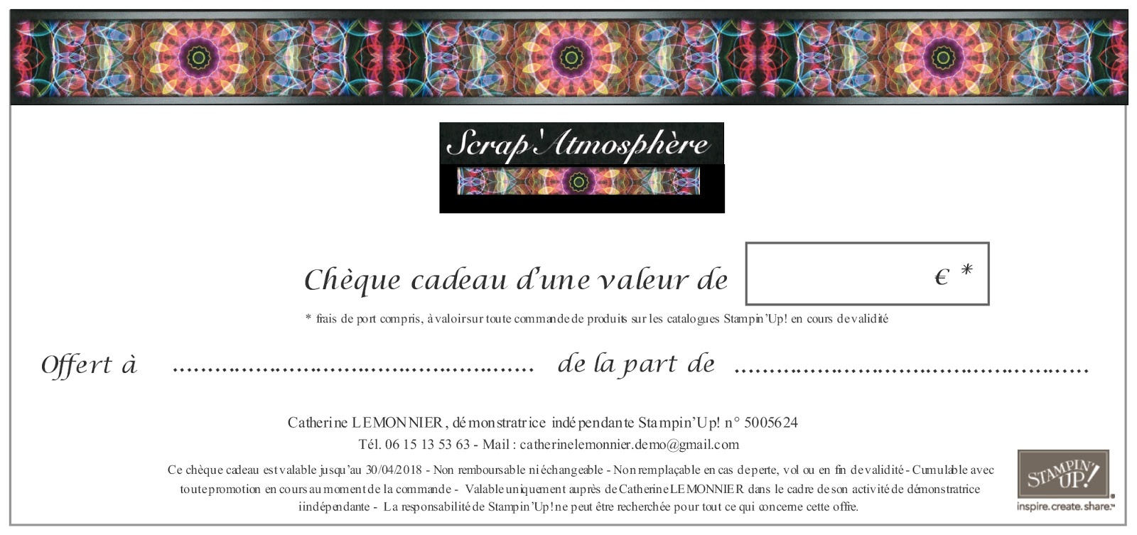 – Je vous envoie (ou directement à la personne concernée si vous le souhaitez) le chèque cadeau dans une jolie carte-pochette que je peux personnaliser si vous m’indiquez l’occasion, le sexe et l’âge de la personne, éventuellement une indication de couleurs…